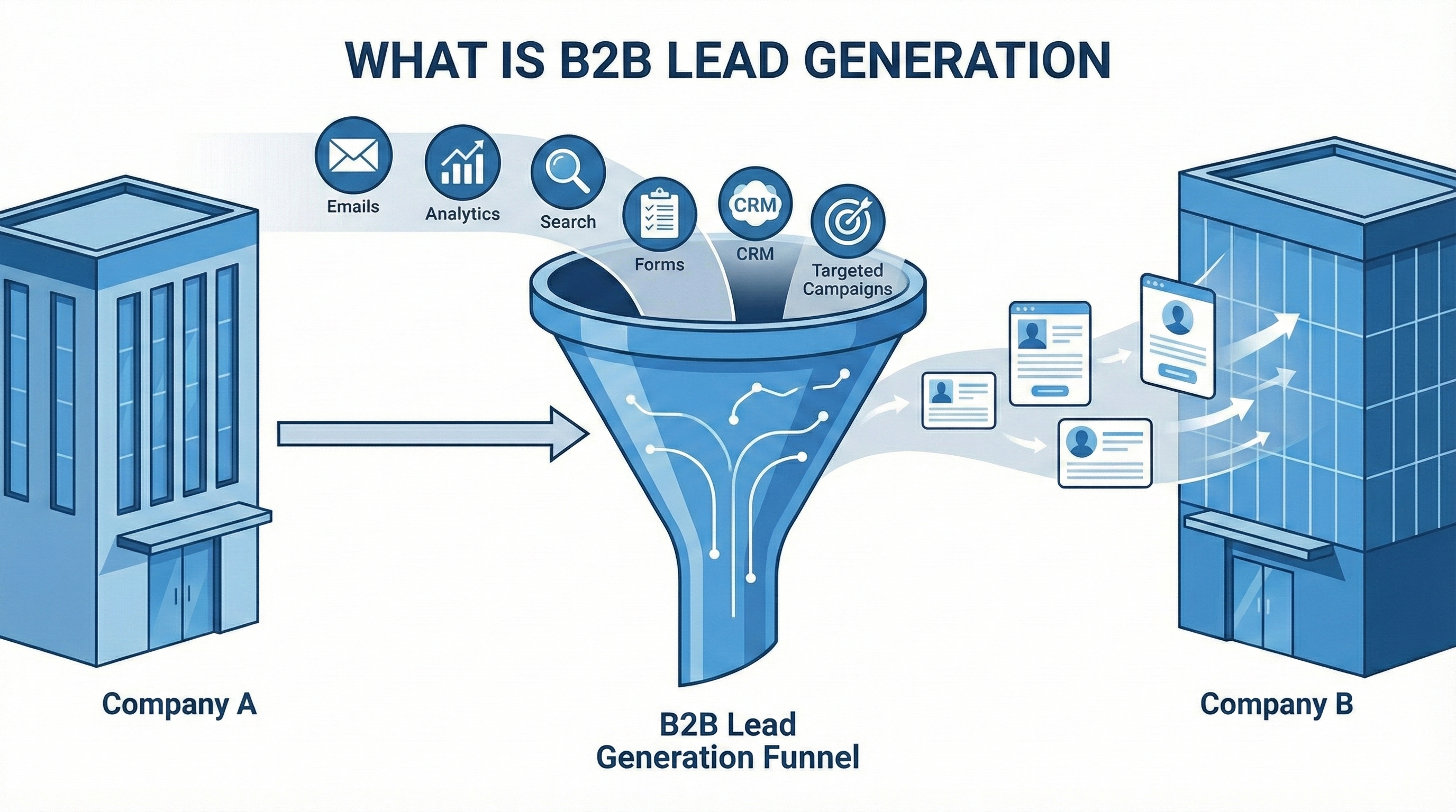B2B lead generation is about finding companies that have a problem your solution can solve — and guiding them until they are ready to buy.